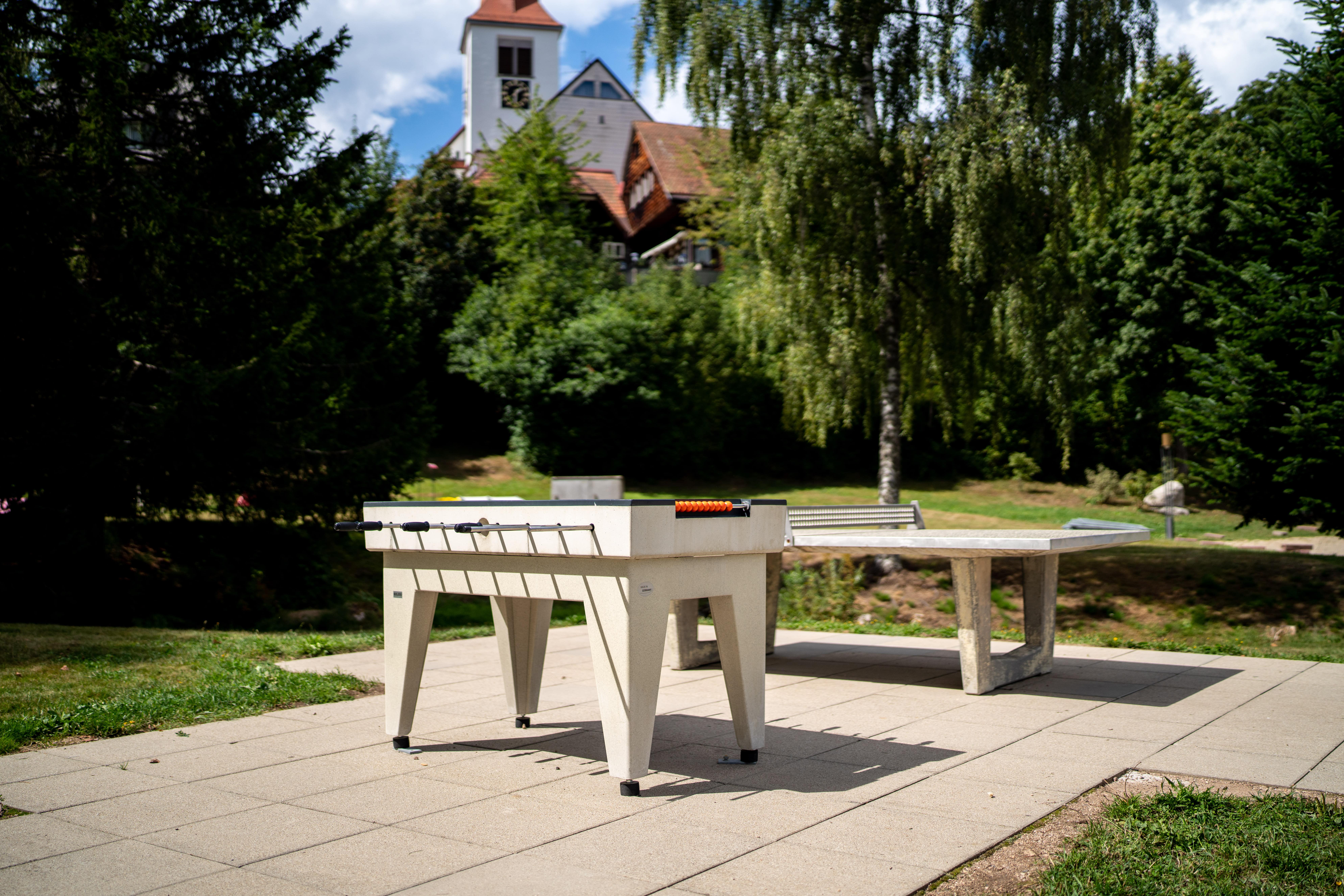 Der Tischkicker und die Tischtennisplatte stehen für alle kostenfrei zur Verfügung.