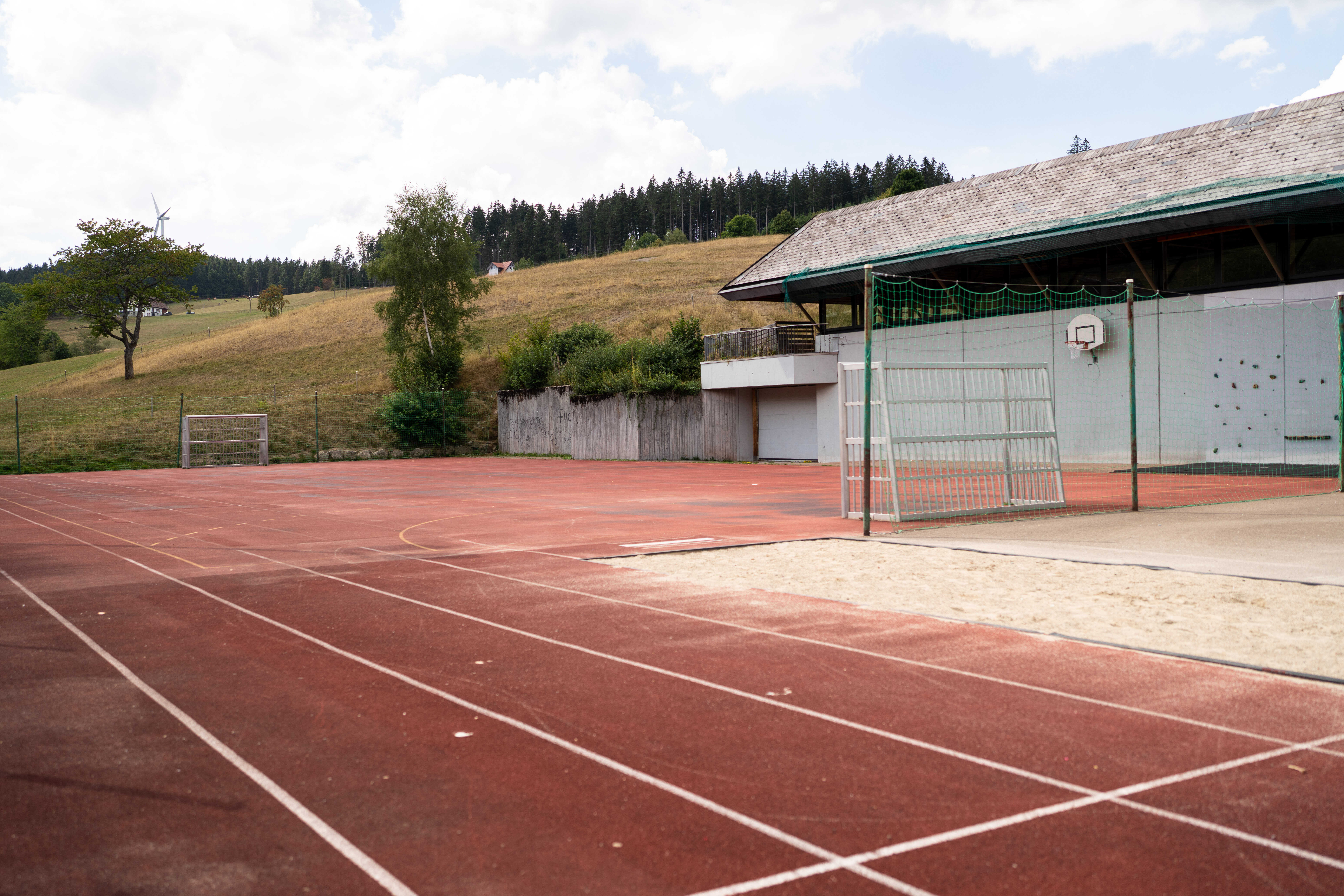 Den Vereinen und der Schule steht neben der Sporthalle ein "Allwettersportplatz" mit Sprunggrube und Laufbahn zur Verfügung.