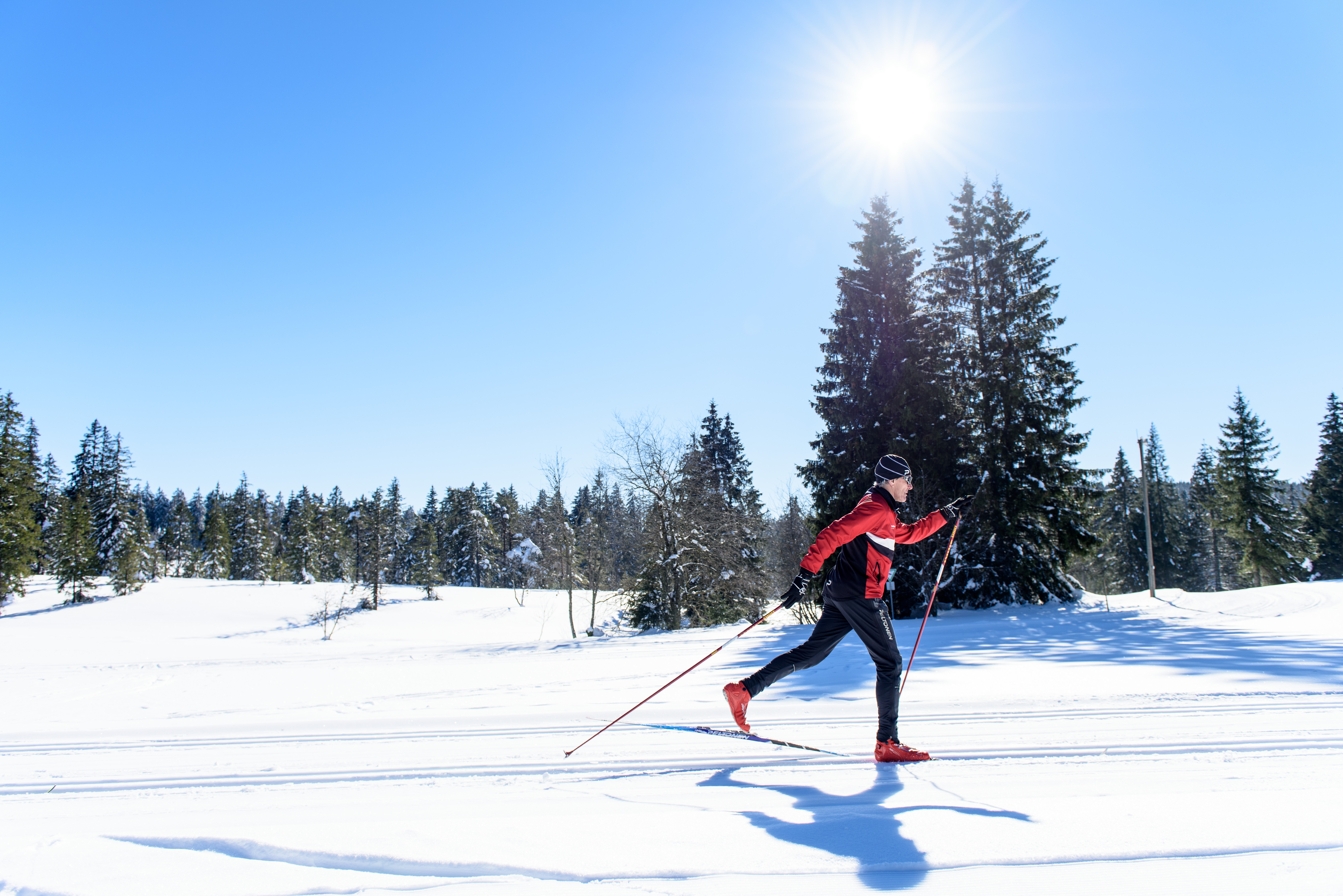Bei genügend Schnee stehen Ihnen rund 40 Kilometer Loipen in Schonach im Schwarzwald zur Verfügung. Diese sind für Anfänger:innen, aber auch für erfahrene Langläufer:innen bestens geeignet. Ausgangspunkt der Loipen ist am Loipenhaus Wittenbach, mit Wachs- und Umkleideräumen sowie Toiletten.