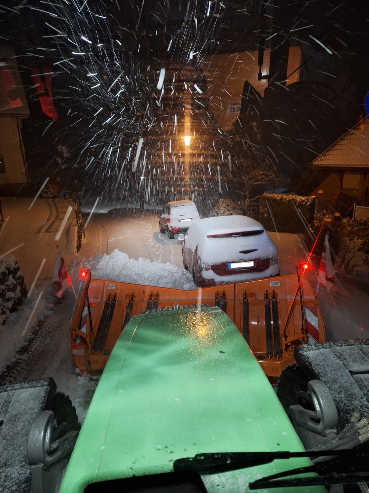 Auch die Bilder aus den aktuellen Einsätzen zeigen deutlich, wie problematisch zugeparkte Straßen und tief hängende Äste für den Winterdienst sind. Ein Schneepflug benötigt mindestens 3,20 Meter Durchfahrtsbreite, um sicher an einem geparkten Fahrzeug vorbeifahren zu können – ohne diese Breite ist ein gefahrloser Einsatz nicht möglich.