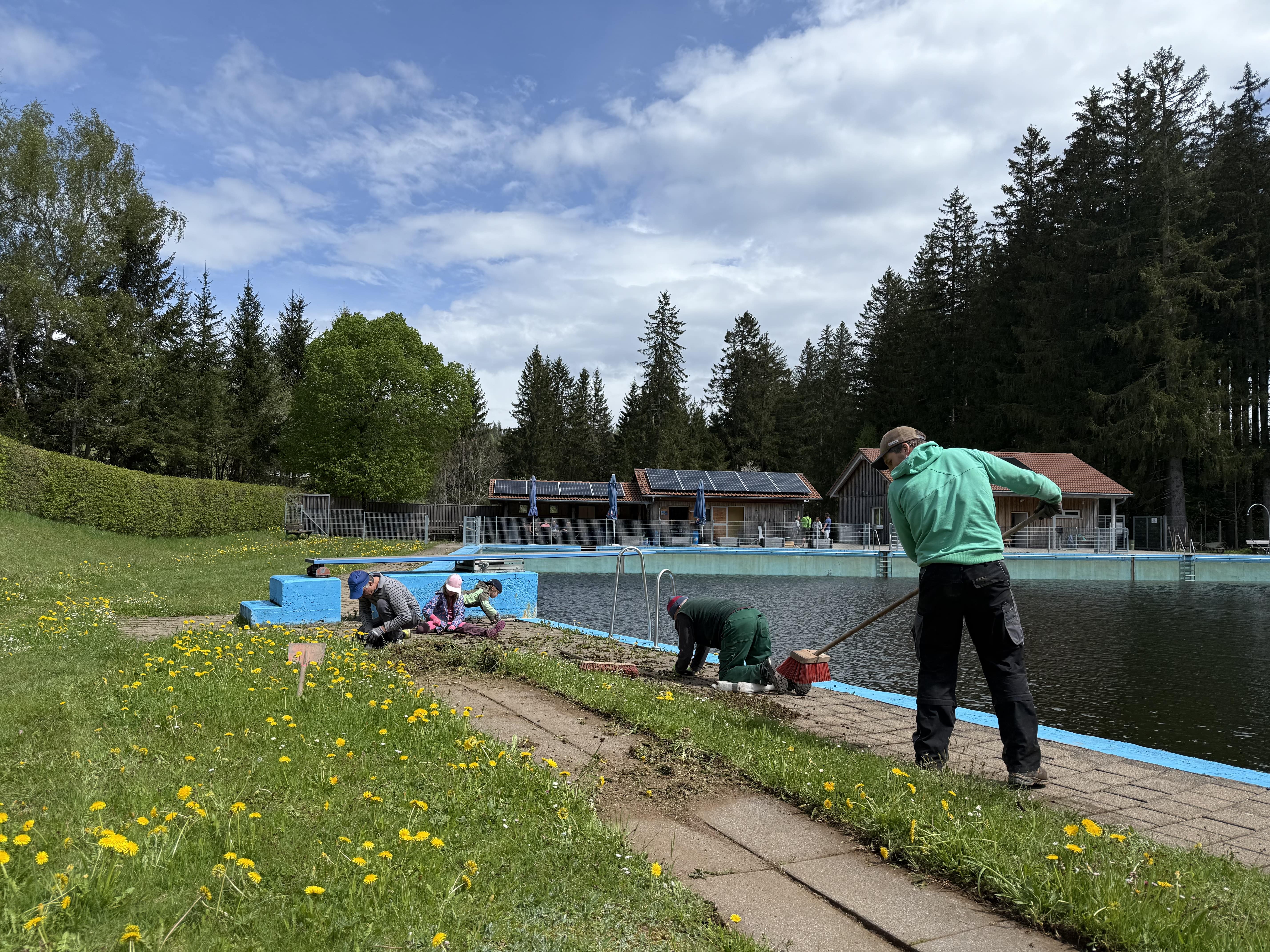 Am vergangenen Samstag, den 3. Mai, fand in Schonach wieder die alljährliche Schwimmbad-Aktion statt. Rund 20 engagierte ehrenamtliche Helferinnen und Helfer beteiligten sich tatkräftig daran, das Naturschwimmbad Schonach für die bevorstehende Badesaison herzurichten.