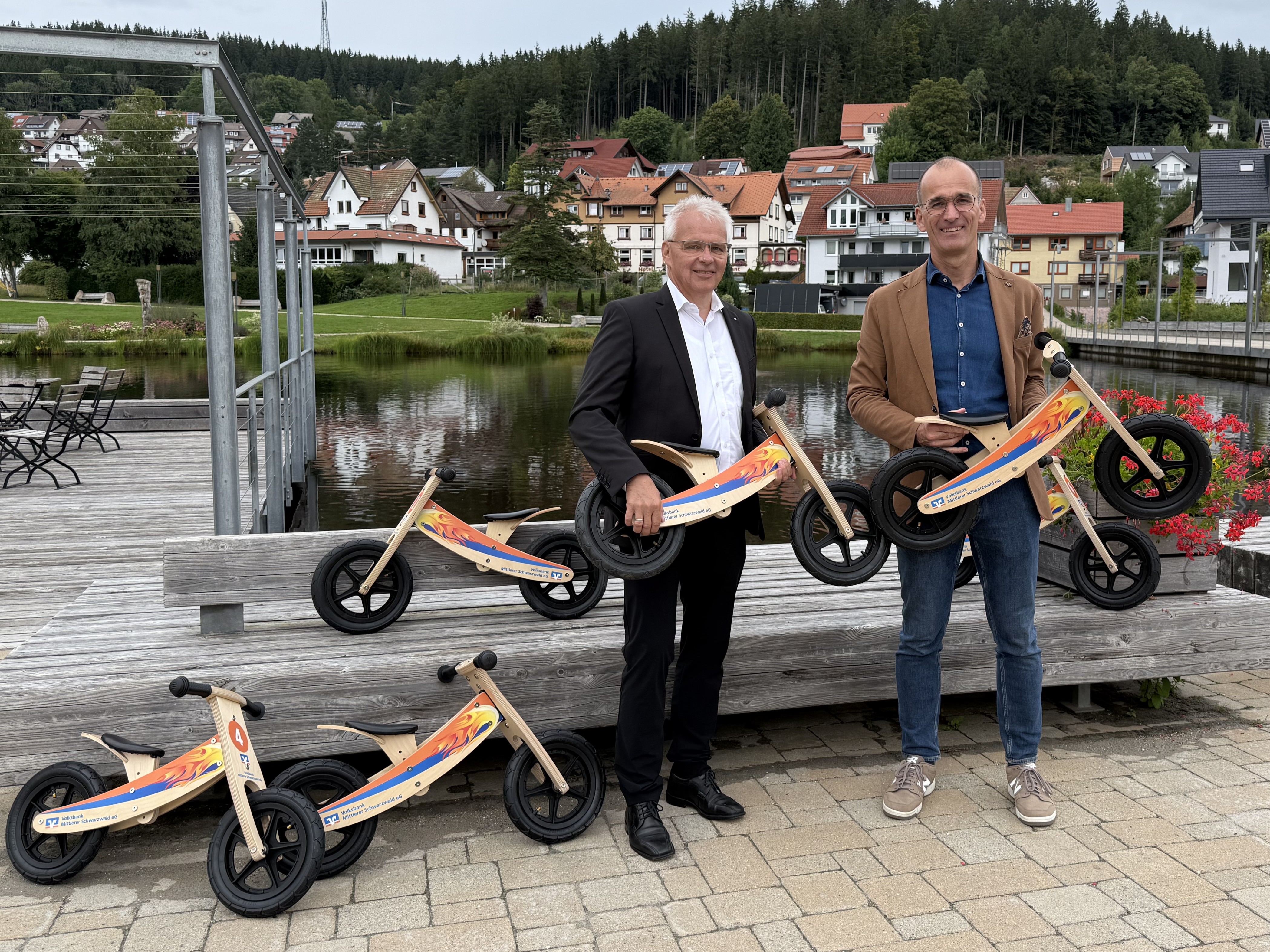 „Wir sind der Volksbank Mittlerer Schwarzwald eG für ihre kontinuierliche Unterstützung sehr dankbar. Die neuen Laufräder stellen die beste Investition dar, denn sie sorgen für Begeisterung bei den Kindern. Aufgrund ihrer Beliebtheit kommen sie bei gutem Wetter sehr stark zum Einsatz. Gleichzeitig möchte ich aber auch an alle appellieren: Bitte gehen Sie mit den Laufrädern achtsam um. Leider werden diese oft achtlos in der Gegend herumgeworfen. Alle haben Freude an diesem Angebot – umso bedauerlicher ist es, wenn die Räder dadurch schnell in einem schlechten Zustand sind“, so Bürgermeister Jörg Frey.