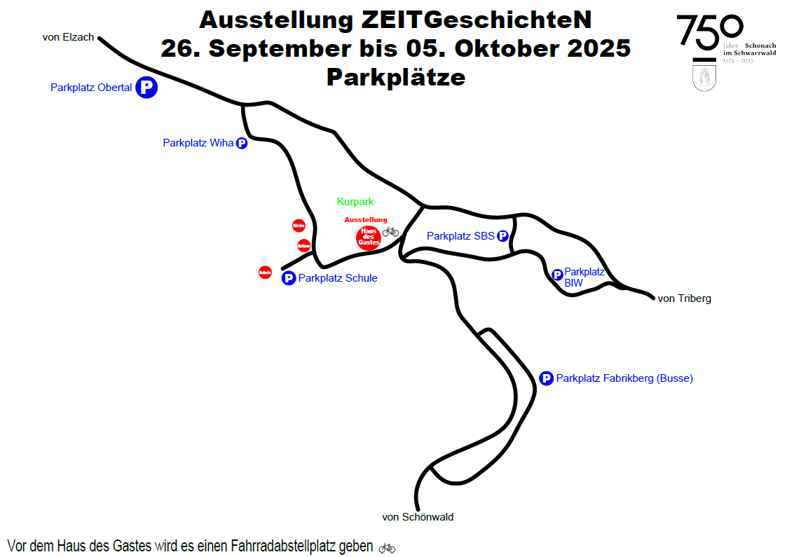Für Besucherinnen und Besucher, die mit dem Auto anreisen, stehen an den beiden Wochenenden zahlreiche Parkplätze im Ortskern sowie am Obertalparkplatz und am Fabrikberg zur Verfügung, zusätzlich können die Firmenparkplätze der BIW, der Burger Group und Wiha genutzt werden.